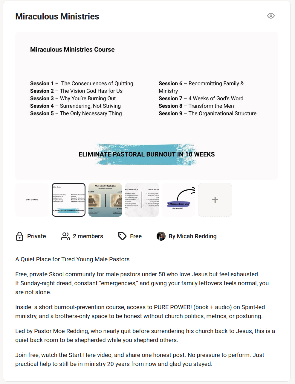 We're pastors who almost left the ministry, dedicated to revitalizing men of God with purpose and clarity. Holy Spirit wisdom and practical tools guide everything we do. Our community is designed with results and confidentiality in mind. We believe ministry fire returns with clear steps, open collaboration, and a clear sense of your goals.